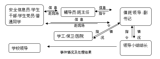 (2)辅导员班主任在获悉情况后,应在第一时间赶到现场,设法稳定局势,防止事态恶化;如有人员受伤,应立即组织人员将伤员送至校医院或市区医院诊治;同时班主任或辅导员应立即将情况向学院分管学生工作的领导汇报;
